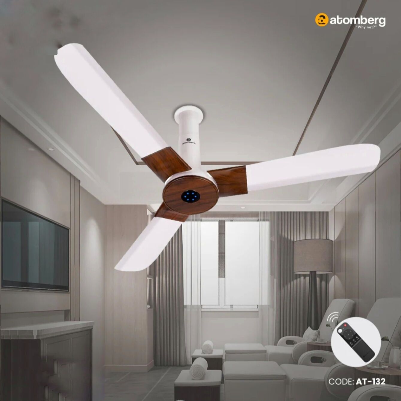 Everything we do at Atomberg is centered around our core belief “Why not?”. Why not use smart technology to make lives easier and better? Why not work towards an energy-efficient future? The Atomberg is built on that belief. All our fans are powered by BLDC technology: Brushless Direct Current. This means that they consume only 35 watts while running at the highest speed. Which in turn means that you can save up to 1920 Tk per fan per year on your electricity bills! It doesn’t end there. It runs almost three times longer on the inverter. It can be easily operated by a smart remote which has boost, sleep, and timer mode. It is just what your smart home deserves. Now that we have discussed the high-tech stuff, let us tell you how why our fans are so gorgeous and functional at the same time. This variant has a sleek metallic & wooden finish which is easy to clean. Say no to rust and dust! The longer span of the blades results in wider air spread and better air delivery. The only thing you will get distracted by is the stunning LED indication for speed on the motor. It is just what your gorgeous home deserves. And that is what we do. Make smart things without compromising on aesthetics. Because why not?