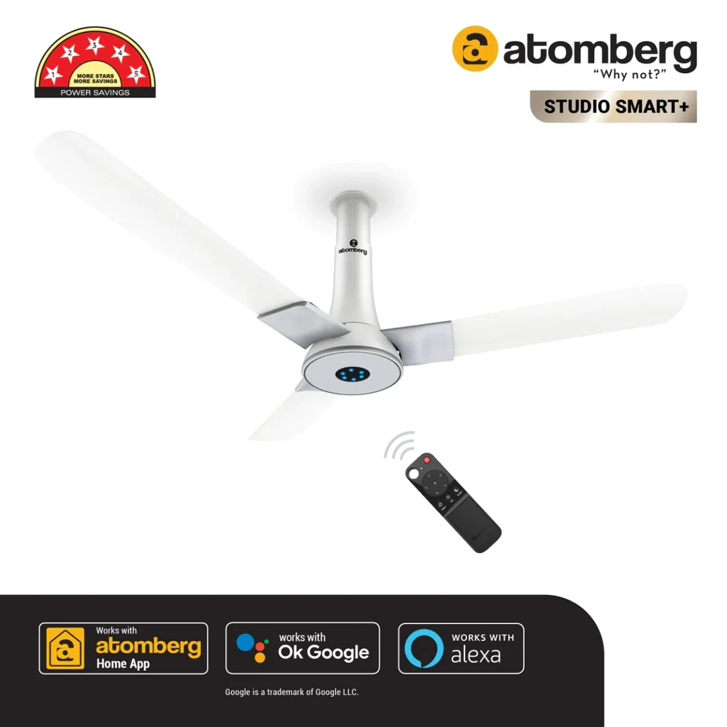 Atomberg Aris 48″ Silent Energy Efficient BLDC Motor With Smart IoT and IR Remote Ceiling Fan (Marble White)