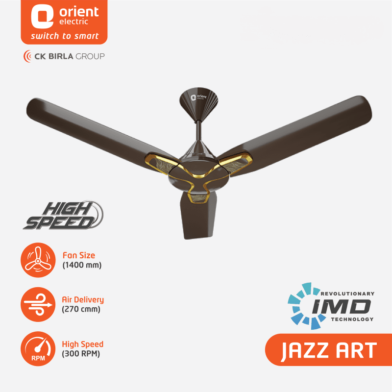 Finding premium ceiling fans in India is not a difficult task anymore, Orient electric offers cutting edge quality ceiling fans to remove all your concerns. When it is hot and humid outside, you can lower the room temperature with Orient Jazz Art fan which caters to the need of every buyer. With a sweep of 1200 mm, the fan helps in circulating cool air around the room and can be an ideal pick for larger bedrooms or living rooms. The powerful motor works efficiently at a maximum speed of 310 RPM and ensures magnificent air delivery with a minimal power consumption of 62 watts.